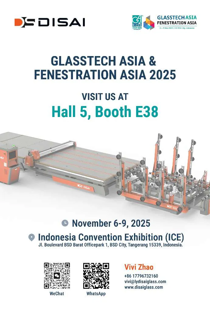 As one of the most influential trade fairs for the glass and fenestration industries in Southeast Asia, Glasstech Asia provides an ideal platform for global technology leaders to showcase innovations and connect with industry professionals. At the event, Disai will highlight its latest advancements in automated glass loading, cutting, and intelligent storage systems. These state-of-the-art solutions are designed to help glass manufacturers enhance production efficiency, improve product quality, and reduce operational costs.